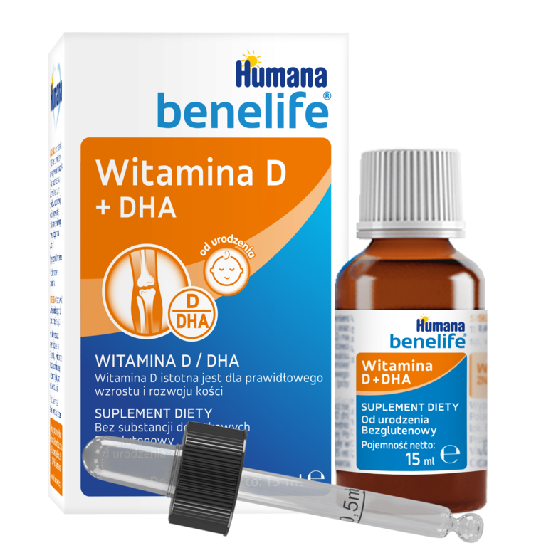 Humana Benelife® D + DHA là thực phẩm bổ sung vitamin D và axit docosahexaenoic (DHA). Công thức dạng lỏng này được phát triển để bổ sung các dưỡng chất thiết yếu cần thiết cho chế độ ăn uống hàng ngày của trẻ sơ sinh và trẻ lớn.